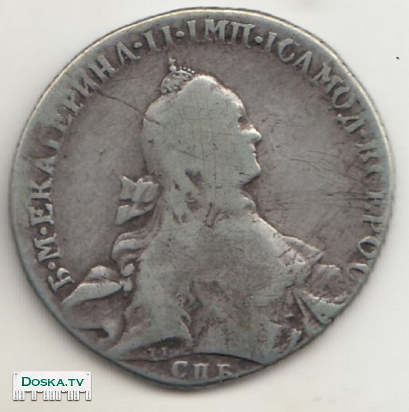 Описание Продам серебряный рубль,Российская Империя,Екатерина 2,ЯI-TI,СПБ 1764 г.,две последние цифры даты затёрты и просматриваются с трудом.