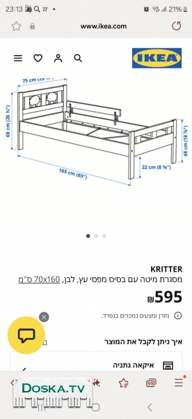 Продаю детскую кроватку Икеа.Дно кровати вырезали сами из плотного полотна дерева.есть бортик(цена в магазине 595 ш) кроватке в подарок отдаю матрац(цена в магазине 300 ш),абсолютно новый,не был в использовании. Кроватка в хорошем состоянии,легко собирается .общая цена 250 ш.Самовывоз из Бат Ям.Есть лифт.